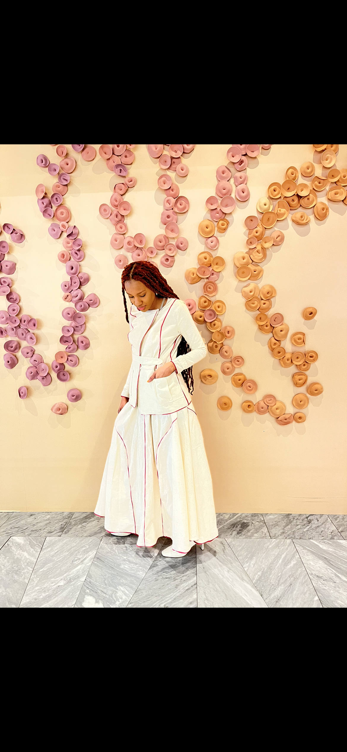 A specially designed look envisioned for Kate Spade, centered around the reinvention of hospital attire, infusing a sense of joy and haute couture into healthcare settings.